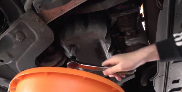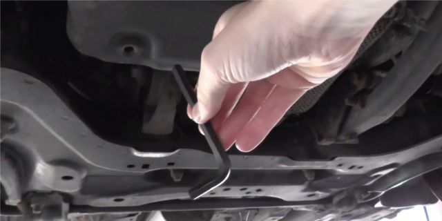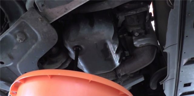 Автомобиль следует поставить на яму, эстакаду или подъемник, также можно воспользоваться пандусом или домкратом с упорами, чтобы получить удобный доступ к масляному поддону. Далее надо подставить емкость под сливное отверстие и выкрутить пробку шестигранником «на 8».