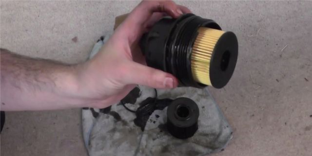 Очистив корпус фильтра от масла, нужно поменять уплотнительное кольцо и фильтрующий элемент.