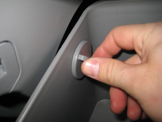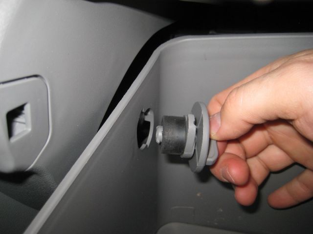 Сначала нужно открыть бардачок и убрать все, что внутри. Затем снять ограничитель справа, с внешней стенки бардачка, а затем извлечь боковые стопоры на внутренней стороне стенок. Для этого их надо повернуть против часовой стрелки на четверть оборота. Если упоры артачатся, можно приподнять бардачок. Разобравшись с боковыми стопорами, следует убрать бардачок.