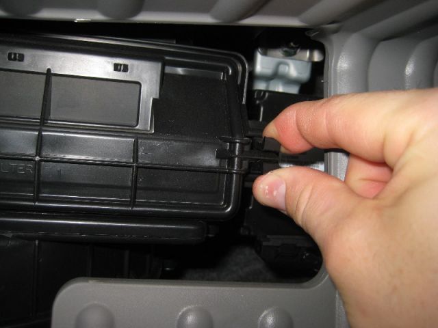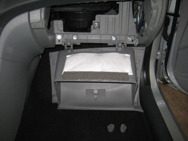 Салонный фильтр Hyundai Solaris находится за бардачком — его понадобится снять. Никаких инструментов для этого не требуется.