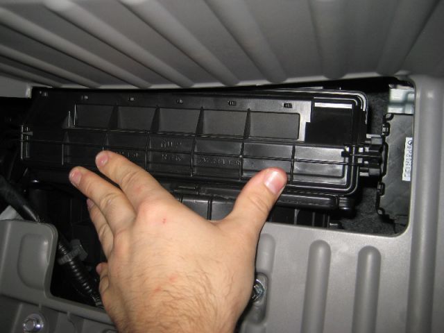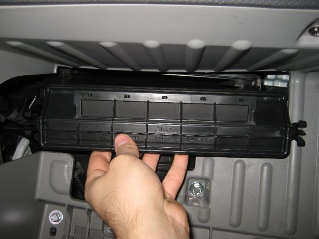 Для этого садимся на переднее пассажирское сидение, на против бардачка. Ведь именно за ним находится место установки: